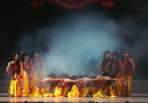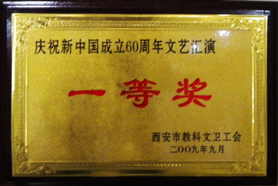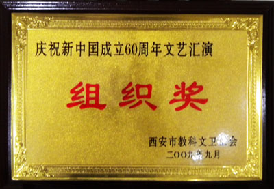 在西安市教科文卫工会举办的“为祖国放歌”——庆祝新中国成立60周年文艺汇演活动中,我院获得组织奖,由我院工会组织编排的舞蹈“溜溜的康定”荣获一等奖。 9月11日下午2:00,文艺汇演活动在我市五四剧院隆重举行,来自教育、文化、卫生系统的24家单位以舞蹈、诗朗诵、合唱等形式向大家呈现了一台精彩纷呈的节目,诠释了我市教科文卫系统对伟大祖国的深情歌颂与赞美。最后经过专家打分,评出一、二、三等奖,我院舞蹈“溜溜的康定”艺压群芳,受到了热烈欢迎,获得演出一等奖。