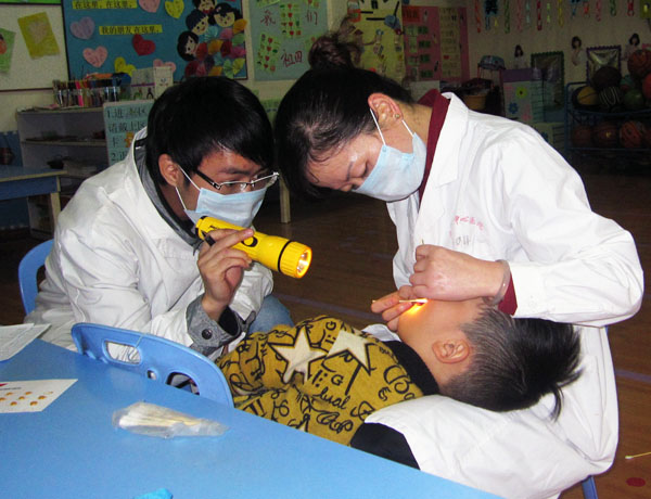 龋病是幼儿最常见的口腔疾病,我国5岁儿童乳牙患龋率为66.0%,平均每个儿童有3.5颗龋齿。因幼儿的表达能力有限,不能及时发现龋病,待出现症状时龋病均已较为严重,加之家长的认识有限,治疗时患儿配合较差,使96.9%的龋齿未能及时得到充填,严重影响儿童的口腔健康和生长发育。 为有效控制儿童乳牙龋病上升趋势,卫生部疾控局在十三省市开展学龄前儿童乳牙龋综合干预试点工作,免费为学龄前儿童提供局部用氟预防龋齿服务。局部用氟是将氟化物涂料涂于乳牙各面上来预防龋齿,没有任何痛苦。儿童最好从3岁开始,每半年涂一次,直到6岁为止。这项措施可以使学龄前儿童患龋齿的比例降低20%-30%。 我院口腔科为西安市学龄前儿童乳牙龋综合干预工作试点单位之一。根据试点工作要求,10月初口腔科明确了承担试点工作的人员和职责,并制定了内部管理规则。10月9日,由李线绒副主任医师对参与人员进行口腔局部用氟的规范化培训,开展内部质量控制,并对试点工作的实施细节进行讨论。10月中、下旬,李线绒、张新、王竞博、王晓燕、苗朝旭等医师不辞辛苦,带领学生及护士奔赴宋庆龄育儿中心、筑梦幼儿园、宝康幼儿园,为1000名幼儿进行口腔健康教育、口腔健康检查及局部用氟工作。 窝沟封闭和局部用氟这两个预防龋齿、健康口腔的项目已经纳入2012年卫生部公共卫生管理项目,它不仅是一项社会公益事业,而且它对口腔整体工作起到积极促进作用。另外,我院口腔科还承担8岁儿童的窝沟封闭项目。目前窝沟封闭项目正在我院紧张有序地开展,欢迎本院适龄儿童来口腔科进行免费的窝沟封闭。 (口腔科 供稿)