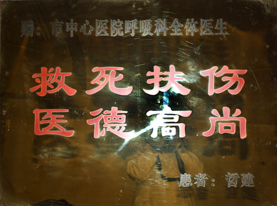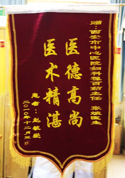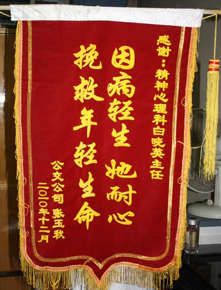 送呼吸科医护人员和妇科程百茹张煊,心理科白晓英锦旗