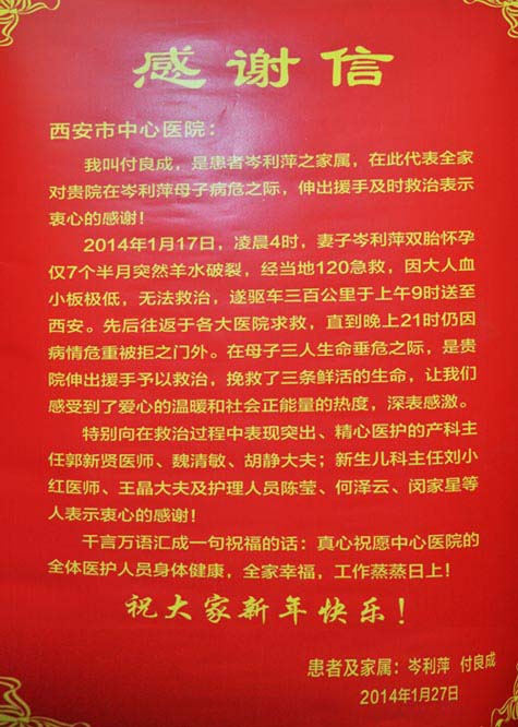 感谢妇产科、神经外科全体医护人员