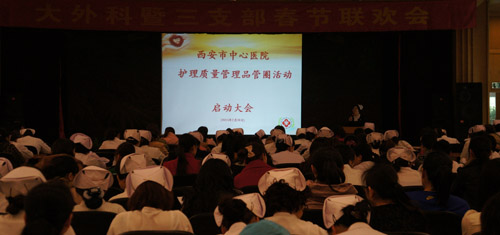 护理质量管理—品管圈活动启动大会在院多功能厅召开。大会由护理部张巧玲主任主持,唐毅副院长与会并作了重要讲话,全院约300名护士参加了启动大会。唐院长特别指出:品管圈是一套成熟的质量管理方法,已在多个领域成功践行。他鼓励全院护士积极运用此科学方法不断提高护理质量,进一步深入开展优质护理,提升我院整体护理水平。大会特邀陕西省护理质控中心办公室主任、主任护师朱云霞老师讲解了品管圈简介及在推行品管圈过程中的步骤及注意事项。