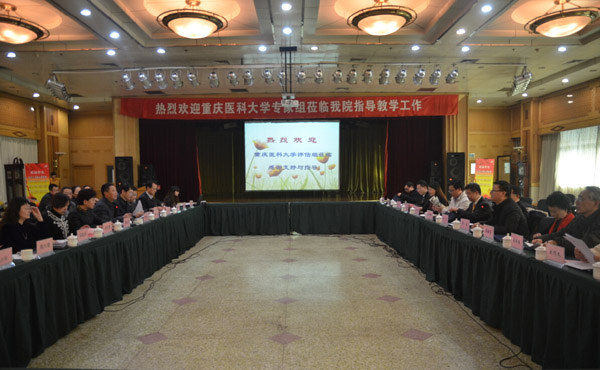 2015年1月上旬,重庆医科大学组织专家组一行十余人莅临我院,分别就我院的发展概况、教学投入、教学条件、开展教学工作的特色和优势等情况进行实地考察,深入临床科室观摩临床带教查房和病例讨论,仔细查阅教学相关台账、实习生工作学习情况等。经过详细的摸底调研,专家组对我院教学工作给予充分肯定。