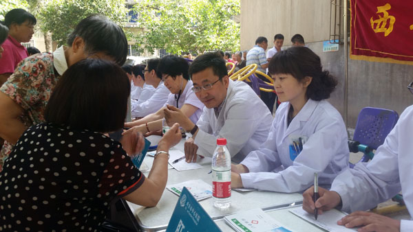 上午8:30,党委副书记、纪委书记李宝英、田晔副院长带队,来自神经内科、消化科、呼吸科、心内科、内分泌科、肛肠科、骨科、泌尿外科等10个专业医护人员及院办、外联办、医务科、护理部、创文办工作人员19人来到了西安市未央区谭家街道办红旗社区。刚到达目的地,闻讯赶来的社区群众就蜂拥而至,专家们一下车就立即进入了工作状态,耐心细致的为前来看病的群众问诊、解答、测血压、开具处方和检查单,整个义诊活动持续到中午11点30分,共接待群众百余名,发放健康宣传资料两百余份,受到了社区群众和老龄委的高度赞扬。