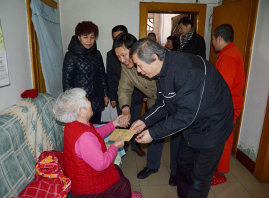 每到一处,院领导们都热情的与老同志嘘寒问暖,送上慰问金、慰问品和新年的祝福,并关切地询问他们的身体状况和生活情况,为他们带去组织的关怀和温暖。